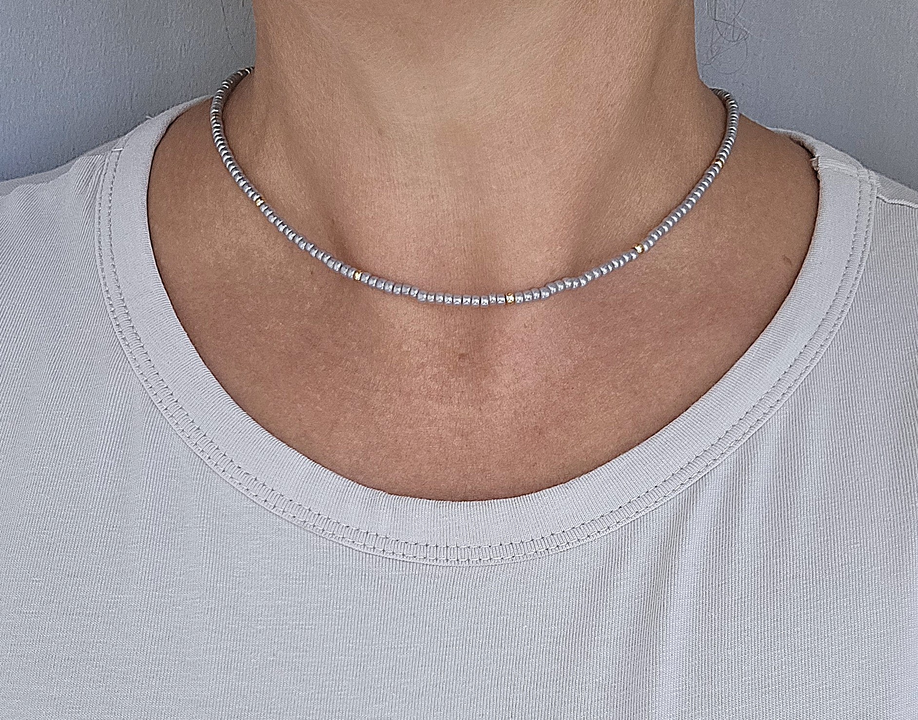 Imeilus käsitööna valminud kaelakee. Kvaliteetsed Miyuki klaashelmed 3mm. kuldsed detailid. Pikkus 38cm+ 5cm pikendatav.